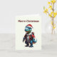 Cartão Dinossauro de Natal Azul