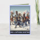 Cartão de Natal de dinossauro incrível para qualquer um que gosta de raptores e Velociraptors antropomórficos usando chapéus de Papai Noel, enquanto tocam uma banda de rap no Natal. Deseje a si um Natal rapturoso.