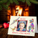 Chegou a hora de um Natal pré-histórico psíquico com estes dinossauros Engraçados em Santa Chapéu e a citação do "Pequeno Auxiliar dos Papais noeis" do Natal com o nome e a foto de uma criança para personalizar este Cartão Colorido. É melhor ter certeza de que você não está na categoria travessa ou esses dinos assustadores estarão atrás de você. T Rex, velociraptor e humor festivo de dinossauro pterodátilo com chapéus bonitos de Papai Noel é a maneira perfeita de trazer diversão e risos para sua família e amigos. Arte original criada pela artista Catherine Sweetman