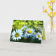 É um dia brilhante e ensolarado. Cinco margaridas selvagens com polos amarelos alegres e pétalas brancas estão no primeiro plano. Uma lagoa cintilante cercada por arbustos e árvores verdes está à distância. Alguém pode percorrer e pegar cada pétala enquanto diz "ele me ama, ele não me ama". Várias pequenas margaridas estão espalhadas na dentro da placa. Este cartão de aniversário trará um sorriso a alguém especial.