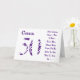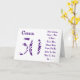 Cartão Diversão, 50 anos, primo, roxo e branco.