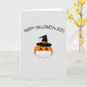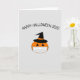 Feliz Halloween 2020. o cartão de quarentena/distanciamento social do Halloween 2020 perfeito, engraçado, com uma abóbora/jack ou lanterna com um chapéu de bruxa e máscara de rosto e um fundo de cinza.