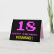 A frente deste design de cartões de saudação de aniversário divertidos, nerds e geeky apresenta um grande número cor-de-rosa "18", juntamente com a mensagem "FELIZ ANIVERSÁRIO", em rosa, e um nome de destinatário personalizável, amarelo e arrojado. O texto tem um aspecto inspirado no dos gráficos antigos de jogos para computador/vídeo, ao estilo de 8 bits, das décadas de 1970 e 1980, e o plano de fundo é preto. O dentro tem uma mensagem de saudação de aniversário personalizável, ou talvez possa ser apagado e deixado o vazio se uma mensagem for escrita à mão. Um bobo de aniversário personalizado como este pode ser uma maneira divertida de reconhecer o aniversário de 18 anos de alguém. [~Z0000478]