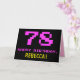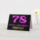 A frente deste design de cartão de saudação de aniversário divertido, geek e nerdy apresenta um grande número cor-de-rosa "78", juntamente com a mensagem "FELIZ ANIVERSÁRIO", em rosa, e um nome de destinatário personalizado amarelo ousado. O texto tem uma aparência inspirada no estilo clássico de 8 bits de jogos de computador e gráficos de jogos de vídeo das décadas de 1970 e 1980, e o plano de fundo é preto. O dentro apresenta uma mensagem de saudação de aniversário personalizada, ou talvez possa ser limpo e vazio à esquerda se uma mensagem for escrita à mão. Um cartão de aniversário personalizado de bobo como este pode ser uma maneira divertida de enviar uma mensagem para comemorar os setenta e oito anos de alguém. [~Z0000478]
