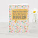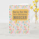Celebre com estilo! Este cartão de aniversário moderno de meados do século com explosão de estrelas retrô é perfeito para amantes de design que apreciam humor e charme vintage.