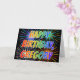 Estas características coloridos e do divertimento do aniversário do cartão de design a mensagem "FELIZ ANIVERSARIO," e o nome comum "GREGORY" com as letras que têm um espectro colorido do arco-íris gostam do teste padrão da coloração do inclinação. O fundo da parte dianteira igualmente caracteriza um teste padrão colorido inspirado pela aparência de estourar fogos-de-artifício. As características internas uma mensagem customizável do cumprimento, ou poderiam talvez ser canceladas e sairiam do vazio se uma mensagem deve ser escrita à mão pelo contrário. Esta pôde ser uma maneira do divertimento de reconhecer o aniversário de alguém Gregory nomeado. [~Z0000350]