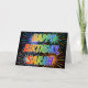 Estas características vibrantes, coloridos e do divertimento do aniversário do cartão de design a mensagem "FELIZ ANIVERSARIO," e o nome comum "SARAH" com as letras que têm um espectro colorido do arco-íris gostam do teste padrão da coloração do inclinação. O fundo da parte dianteira igualmente caracteriza um teste padrão inspirado fogos-de-artifício de estouro colorido. As características internas uma mensagem de cumprimento personalizada, ou poderiam talvez ser canceladas e sairiam do vazio se uma mensagem deve ser escrita à mão pelo contrário. Um cartão como este podia ser uma maneira do divertimento de comemorar o aniversário de alguém Sarah nomeada. [~Z0000350]