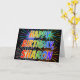Estas características vibrantes, coloridos e do divertimento do aniversário do cartão de design a mensagem "FELIZ ANIVERSARIO," e o nome comum "SHARON" com as letras que têm um espectro colorido do arco-íris gostam do teste padrão da coloração do inclinação. O fundo da parte dianteira igualmente caracteriza um teste padrão colorido inspirado pelo olhar de estourar fogos-de-artifício comemorativos. As características internas uma mensagem feita sob encomenda do cumprimento, ou poderiam talvez ser canceladas e sairiam do vazio se uma mensagem deve ser escrita à mão pelo contrário. Um cartão como este podia ser uma maneira do divertimento de comemorar o aniversário de alguém Sharon nomeada. [~Z0000350]