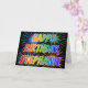 Estas características do divertimento, as vibrantes, as coloridos do aniversário do cartão de design a mensagem "FELIZ ANIVERSARIO," e o nome comum "STEPHANIE" com as letras que têm um espectro colorido do arco-íris gostam do teste padrão da coloração do inclinação. O fundo da parte dianteira igualmente caracteriza um teste padrão inspirado fogos-de-artifício de estouro colorido. As características internas uma mensagem de cumprimento personalizada, ou poderiam talvez ser canceladas e sairiam do vazio se uma mensagem deve ser escrita à mão pelo contrário. Um cartão do aniversário como este podia ser uma maneira do divertimento de enviar a uma mensagem customizável do cumprimento do aniversário a alguém Stephanie nomeada. [~Z0000350]