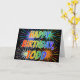 Estas características do divertimento, as vibrantes, as coloridos do aniversário do cartão de design a mensagem "FELIZ ANIVERSARIO," e o nome comum "TODD" com as letras que têm um espectro colorido do arco-íris gostam do teste padrão da coloração do inclinação. O fundo da parte dianteira igualmente caracteriza um teste padrão inspirado fogos-de-artifício de estouro colorido. As características internas uma mensagem feita sob encomenda do cumprimento, ou poderiam talvez ser canceladas e sairiam do vazio se uma mensagem deve ser escrita à mão pelo contrário. Esta pôde ser uma maneira do divertimento de reconhecer o aniversário de alguém Todd nomeado. [~Z0000350]
