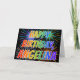 Estas características vibrantes, coloridos e do divertimento do aniversário do cartão de design a mensagem "FELIZ ANIVERSARIO," e o nome comum "ANGELINA" com as letras que têm um espectro colorido do arco-íris gostam do teste padrão da coloração do inclinação. O fundo da parte dianteira igualmente caracteriza um teste padrão colorido inspirado pela aparência de estourar fogos-de-artifício comemorativos. As características internas uma mensagem de cumprimento personalizada, ou poderiam talvez ser canceladas e sairiam do vazio se uma mensagem deve ser escrita à mão pelo contrário. Um cartão do aniversário como este podia ser divertimento para dar a alguém Angelina nomeado em seu aniversário. [~Z0000350]