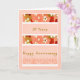 Esta design do 37º Aniversário tem um fundo de pêssego com bordas e flores. A frente do cartão tem "37 Anos", "Feliz Aniversário". As flores do cartão são itens comprados.