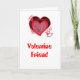 Cartão do amigo dos namorados com coração vermelho decorativo e um coração minúsculo à direita. Texto vermelho brilhante e tudo em um fundo branco.