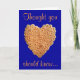 Diz no interior "que você é o queijo a meu macarrão" com o coração do macarrão na parte dianteira e parte traseira.