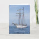 Yacht o cartão do aniversário com uma navigação do iate no mar, lá é mesmo um vôo pequeno do papagaio-do-mar acima do h no aniversário