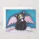 Mesmo os gatos têm anjo-da-guarda! Cartão preto lunático do gato do anjo. Pintura original: acrílico em canvas Lisa 2008 Marie Robinson