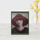 Características deste design uma imagem de uma jovem mulher em um chapéu do cloche do 1920. Pintado por P. Hertel. Texto interno: Pensamento de você.
