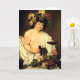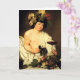 Cartão do Baco de Caravaggio. Pintura a óleo em canvas desde 1595. O Baco é uma das pinturas as mais famosas de Caravaggio italiano do artista. O trabalho caracteriza um homem novo vestido como o Baco clássico do deus com folhas e uvas em seu cabelo e em uma bacia de fruta que senta-se antes dele. A pintura famosa contem um carafe do vinho em que a imagem do pintor em sua armação pode ser considerada. O vidro de vinho as posses do homem novo contem do mesmo modo sua reflexão. Um grande presente para fãs de Caravaggio, da arte barroco, das pinturas da mitologia, e do vinho.