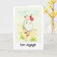 Um cartão do "bon voyage" com um ganso que expor em uma viagem com seus pertences amarrados acima em um vermelho e em um branco manchou o lenço, da pintura do watercolour por Judy Adamson. O interior do cumprimento é, "tem uma viagem maravilhosa!".