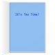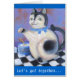 O cartão azul com impressão da pintura autorizou do "o bule do gato vintage" e o texto: "Deixe-nos reunir… É tempo do chá!"