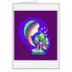 Relógios de cabelo de uma mulher do arco-íris calma sobre um filhote de cachorro sob uma árvore. O cartão está vazio no interior.