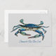 Cartão colorido com uma imagem em estilo aquarela do Caranguejo Azul da Baía de Chesapeake, conhecido por sua carne doce usada em famosas tortas de caranguejo na Virgínia e em Maryland.