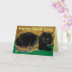Design de cartão que caracteriza uma fotografia da estrela Noir, um de nossos gatos salvados, com a miçanga do carnaval que travou. O cartão pode ser personalizado como um convite ou um cartão.
