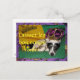 Fotografia de Rio, um de nossos cães salvados, relaxando em seu finery do carnaval. Palavras: Rouler dos temps do bon dos les de Laissez (deixe o bom rolo das épocas)