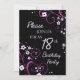 18o cartão do convite de aniversário no preto elegante, teste padrão floral fúcsia e cor-de-rosa, delicado e na moda com redemoinhos brincalhão. Customizável com seus detalhes do partido.