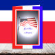 Este cartão do Dia da Independência paga o tributo ao branco e ao azul vermelhos com a elevação de voo da bandeira e as palavras dos "direito americano deus abençoe" pela bandeira. Copyright Kathy Henis