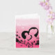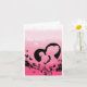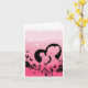 Cartão do Dia das Mães Rosa com silhueta de uma mãe e filha. O cartão tem uma silhueta de flores na parte inferior.