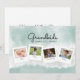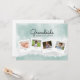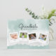 Deseje um feliz Dia das Mães à vovó com este lindo cartão de colagem de fotos em aquarela. Personalize-o com 4 fotos da família e nomes para um cartão verdadeiramente único. O verso diz: Feliz Dia das Mães xoxo, mas pode ser alterado para Feliz Dia dos Avós ou qualquer texto que você preferir.