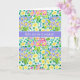 Um cartão bonito do dia das mães com 'dia das mães feliz no espanhol e em um teste padrão profundamente - do rosa, as prímulas profundamente azuis e amarelas, de um design pintado à mão por Judy Adamson.