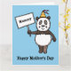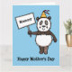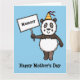 Esta ilustração doce mostra um panda fofo vestindo um chapéu de festa e segurando uma faixa personalizada.