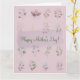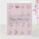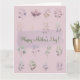 Por dentro, há muito espaço para adicionar sua mensagem pessoal ou escrever suas memórias e desejos mais queridos. Seja você celebrando sua própria mãe ou enviando votos calorosos a uma figura materna querida em sua vida, este cartão temático em lilás claro com seu charme floral é uma maneira sincera de expressar seu amor e apreço no Dia das Mães.