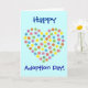 Este design de coração colorido consiste inteiramente de pequenos pontos redondos. Simples mas poderoso, transmite uma mensagem de amor. Adequado para adultos e crianças. O texto "Feliz Dia da Adoção" é perfeitamente personalizável.