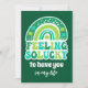 Letras verdes em estilo retrô que dizem "Sinto-me tão sortudo por ter você na minha vida" ao lado de um arco-íris em estilo vintage e trevo de quatro folhas combinando. Perfeito para celebrar o Dia de São Patrício!