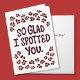 Nosso cartão do Dia dos Namorados para o namorado, com as palavras 'Tão feliz que eu te encontrei', é uma maneira ideal de expressar seu afeto por seu namorado. Com seu design original de letras e padrão lúdico de manchas de leopardo, este cartão certamente fará com que seu amado se sinta querido e valorizado. Seu estilo moderno é perfeito para ele. Você pode personalizar a mensagem, adicionando um toque sincero ao seu sentimento.