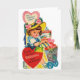 Cartão retro/do vintage dia dos namorados. Menina bonita que faz sua compra no dia dos namorados! Sido Shopping ao redor. Você é o melhor negócio, caros namorados!