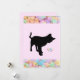 Cartão do Dia dos Namorados com um gato preto prestes a espalhar corações de doce em volta.