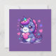Cartão do dia dos namorados do unicórnio mais fofo. Dinossauro kawaii segurando um coração. Cartão muito fofo para o dia dos namorados!