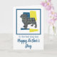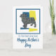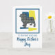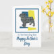Silhueta de cachorro pug em padrão de linhas de grade modernas em amarelo, azul e preto. ‘Para o melhor pai de cachorro’ e ‘Feliz Dia dos Pais’ no exterior e mensagem adorável no interior pode ser alterada para qualquer coisa que você queira. Ótima maneira de celebrar o Dia dos Pais de um amante de animais de estimação.