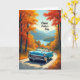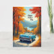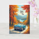 Este design mostra um clássico conversível turquesa 🚗 deslizando por uma estrada de asfalto sinuosa através de uma floresta de outono, seus detalhes cromados capturando a luz como um souvenir polido. Árvores altas se aglomeram em ambos os lados, suas folhas mudando de âmbar, dourado e laranja profundo, criando um túnel aconchegante que parece feito para uma viagem compartilhada e uma conversa tranquila. Ao longe, colinas onduladas desvanecem-se numa névoa azul suave e abrigam um lago calmo que reflete o céu claro. A luz do sol ilumina a cena, lançando sombras suaves sobre a estrada e adicionando profundidade à folhagem em camadas. Perto do topo do cartão, uma curta mensagem do Dia dos Pais aparece num estilo branco fluído, arqueando-se ligeiramente pelo céu de modo que se destaque sem sobrepor a obra de arte. O carro descapotado sugere alguém especial no banco do passageiro 👨, com a estrada à frente insinuando uma companhia fácil e um cuidado constante. O para-brisa