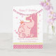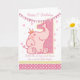 Cartão do elefante cor-de-rosa do primeiro aniversario, bebês øs