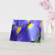 Cartão com a fotografia azul da íris e a mensagem do feliz aniversario para dentro.