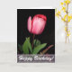 Flor e folhas pinkish bonitas da tulipa neste cartão do feliz aniversario.