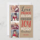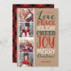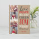 O costume disponível imprimiu cartões com fotos do feriado com modelos simples para a personalização. Este design rústico moderno tem uma mistura festiva de tipografia no vermelho, no branco e nas cinzas em um fundo do papel de embalagem do falso. O fraseio diz o amor, a paz, o elogio do feriado, a alegria, e o Feliz Natal. Personalize-o com as 4 de suas fotos ao longo do lado e adicione-o seu nome de família e o ano. O verso tem um teste padrão vermelho da xadrez da verificação do búfalo ou usa o espaço para fotos e o texto adicionais. Use as ferramentas de design para editar o texto, adicione mais fotos e criar original de um design de cartões de foto de Natal amável.
