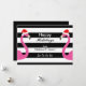 Dois flamingos cor-de-rosa bonitos que vestem chapéus do papai noel em um fundo listrado preto e branco, decoram este cartão do feriado do divertimento, fazendo o perfeitos para aqueles em um lugar tropical, ou aqueles desejando que eram. Os artigos de coordenação adicionais podem ser encontrados na coleção do feriado do flamingo do la do la do la do Fa.