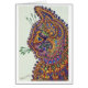 Este cartão bonito para amantes do gato e admiradores da arte do gato do vintage caracteriza o trabalho do artista inglês famoso Louis Wain do gato. Um dos trabalhos mais atrasados de Wain, é um desenho de pastel da fantasia do perfil de um gato com um teste padrão decorativo do papel de parede e umas suiças estilizados magníficas. Quase psicadélico, este gato é um em milhão. O N.B. por favor não fixa nem não reproduz minha versão cuidadosa restaurada sem minha permissão prévia.