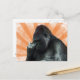 Uma imagem divertida de um gorila que escolhe seu nariz é certa trazer a abundância dos risos. Um alaranjado, sujo, sunburst compo o fundo.